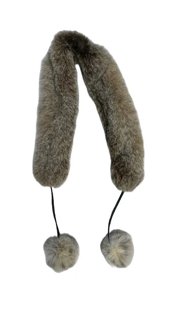 Canadian Lynx Scarf w Pom Poms - Overall length of this scarf including straps and pom poms is 160 cm. The fur portion of this piece is 100 cm long and 15 cm wide. Pom poms are 5" diameter from tip to tip.